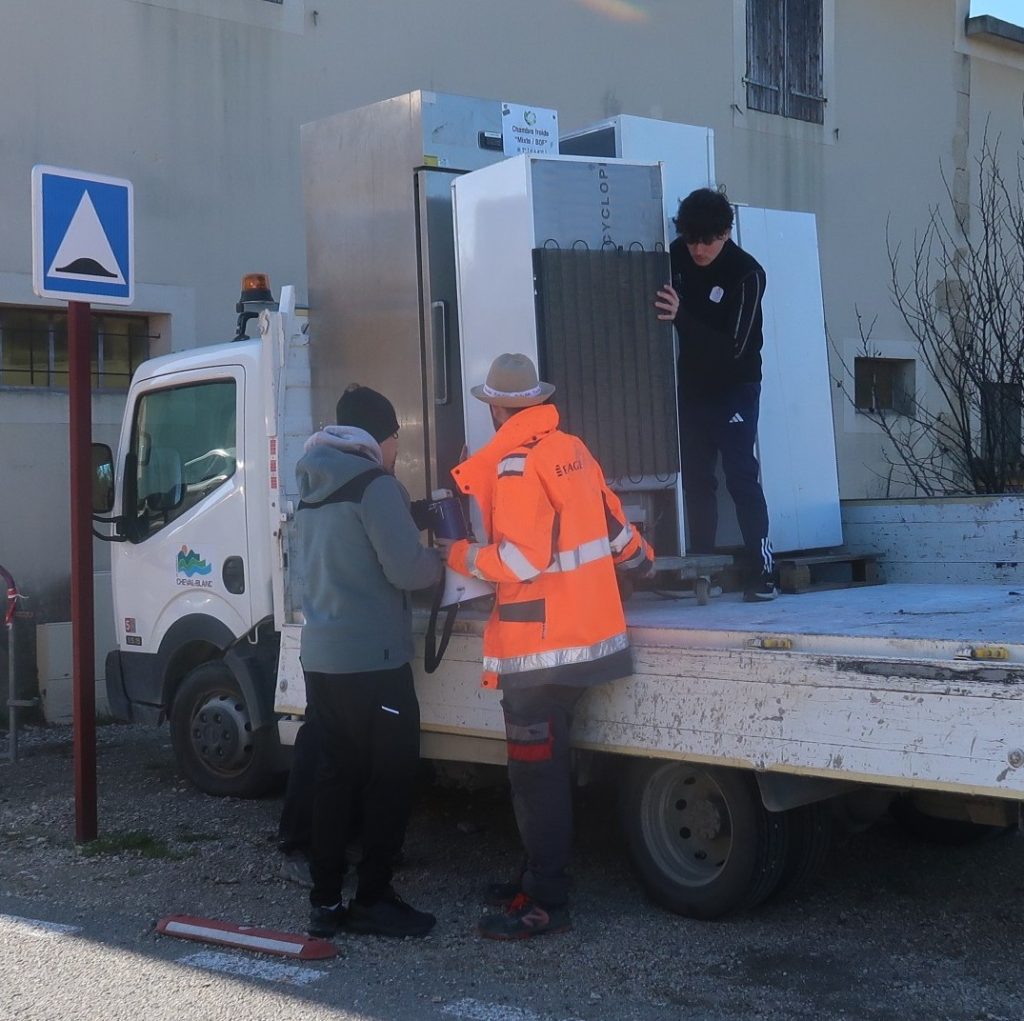 La charrette est en pleine construction. La salle des fêtes est en train d’être aménagée, je peux affirmer que, vu le nombre de frigos installés, on ne manquera pas de boissons fraîches.