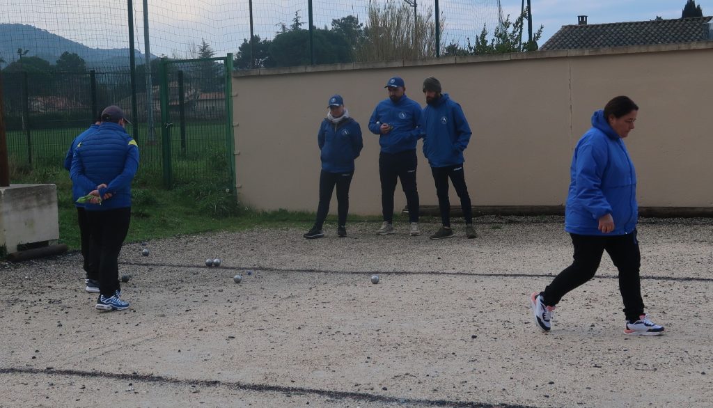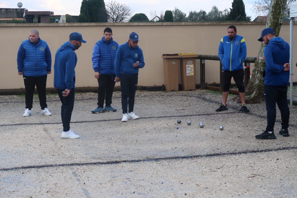 Pour le dimanche 8 mars ce fut un peu plus chaotique avec le passage d’un orage avec grêle au moment du rendez-vous…. Mais les deux équipes, celle de l’Isle sur sorgue la « boule de la ville vieille », comme celle de Cheval-Blanc, « la Boule Chevalblanaise » étaient prêtes à en découdre, alors les parties se sont enchaînées.